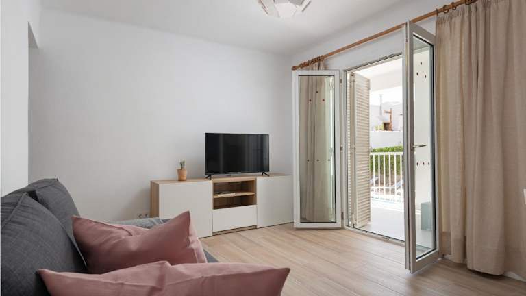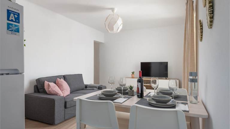 Das neu renovierte Apartment Sunset1 bietet zwei komfortable Schlafzimmer und ein modernes Badezimmer. Die Zimmer sind geschmackvoll eingerichtet und mit allen Annehmlichkeiten ausgestattet, die Sie für einen angenehmen Aufenthalt benötigen. Das Apartment verfügt über einen gemütlichen Wohnbereich mit Flachbild-TV und einen Essbereich, wo Sie Ihre Mahlzeiten genießen können. Die voll ausgestattete Küche bietet Ihnen die Möglichkeit, Ihre eigenen Mahlzeiten zuzubereiten. Von der Terrasse aus haben Sie einen schönen Blick auf die Stadt.