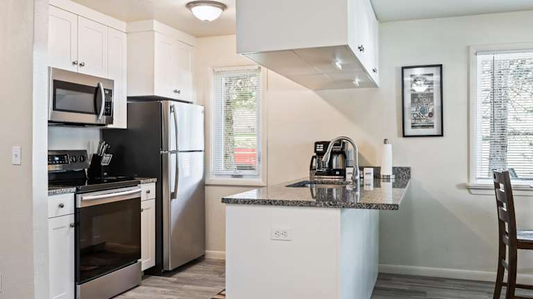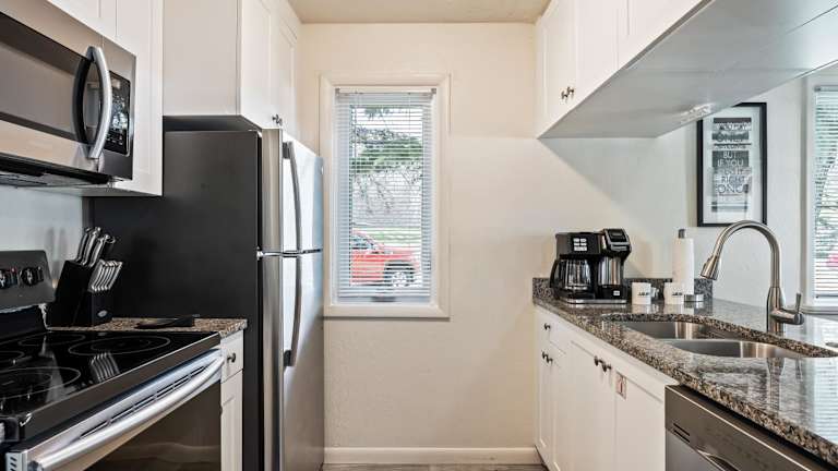 Die Wohnung bietet ein Schlafzimmer sowie eine voll ausgestattete Küche mit Kühlschrank, Geschirrspüler, Waschmaschine, Mikrowelle und Herdplatte. Ein TV mit Kabelkanälen ist vorhanden. Bei der Ankunft müssen Gäste einen Lichtbildausweis und eine Kreditkarte vorlegen.