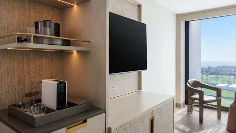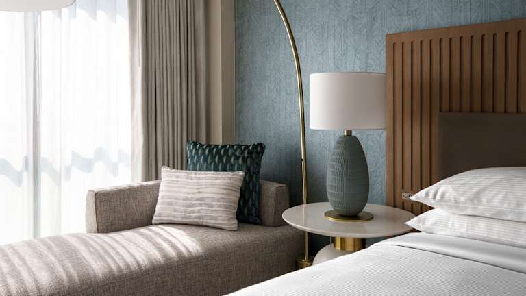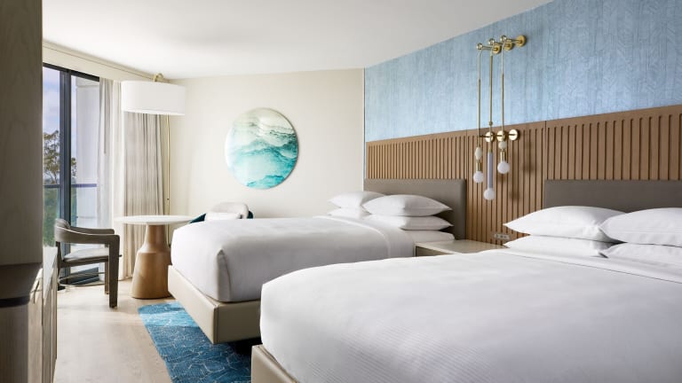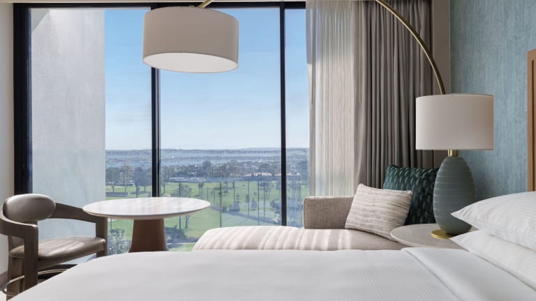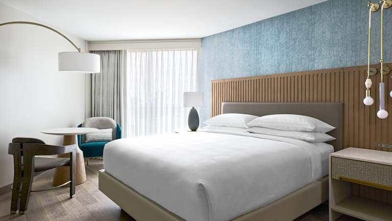 Die Zimmer im VEA Newport Beach sind geschmackvoll eingerichtet und bieten warme Hölzer und neutrale Farben, die an die Küste erinnern. Jedes Zimmer verfügt über einen Flachbild-TV und bietet eine herrliche Aussicht.