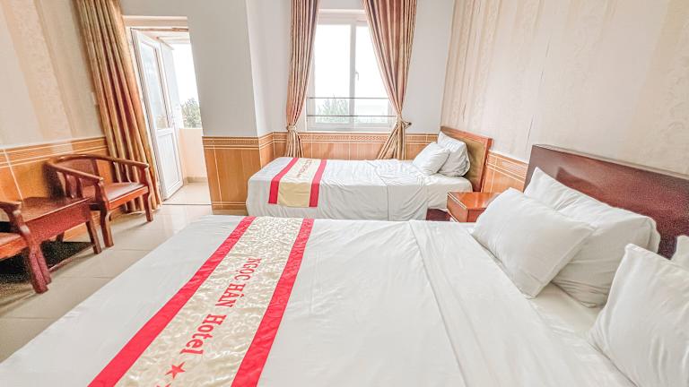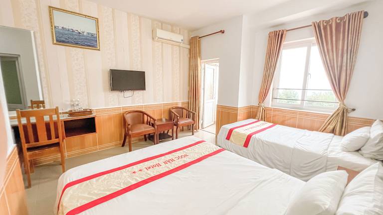 Die Zimmer im Ngoc Han Vung Tau Hotel sind geschmackvoll eingerichtet und bieten eine komfortable Unterkunft für die Gäste. Jedes Zimmer ist klimatisiert und verfügt über Fliesenboden, einen Kleiderschrank, einen Sitzbereich, einen Schreibtisch und einen Flachbild-Kabel-TV. Eine Minibar und ein Wasserkocher sind ebenfalls vorhanden. Das eigene Badezimmer ist mit einer Dusche, einem Haartrockner und kostenlosen Pflegeprodukten ausgestattet. Kostenloses WLAN steht Ihnen im gesamten Hotel zur Verfügung.