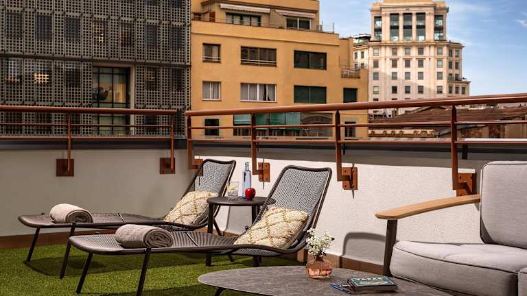 Die Zimmer im NH Collection Barcelona Gran Hotel Calderón sind elegant, gemütlich und modern eingerichtet. Jedes Zimmer verfügt über kostenfreies WLAN, eine Nespresso-Kaffeemaschine und ein eigenes Bad mit einer Regendusche. Zur weiteren Ausstattung gehören ein Flachbildfernseher, ein Safe und eine Minibar. Einige Zimmer verfügen auch über einen Balkon oder eine Terrasse. Der Zimmerservice steht Ihnen rund um die Uhr zur Verfügung, um Ihren Aufenthalt so angenehm wie möglich zu gestalten.