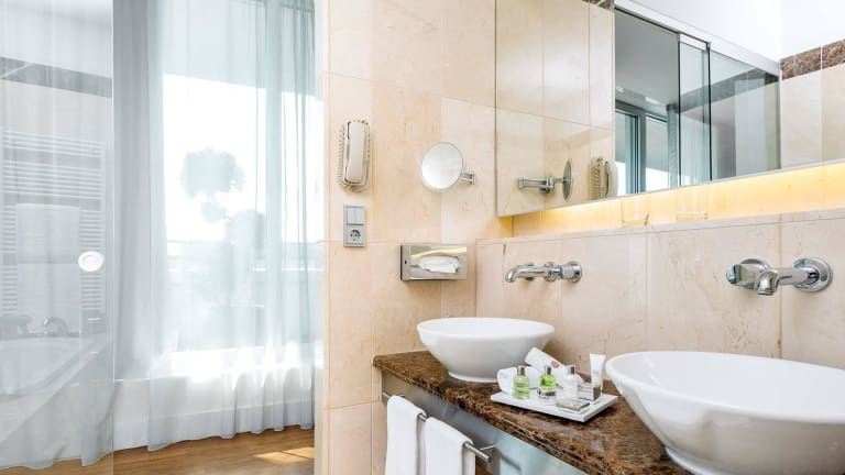 Die 268 Zimmer sind komfortabel eingerichtet und verfügen über eine moderne Ausstattung inklusive Klimaanlage, Flatscreen-TV, Minibar, Telefon, Nespressomaschine, Föhn und Auswahl an Kopfkissen.