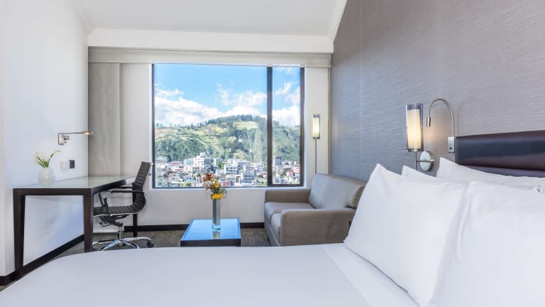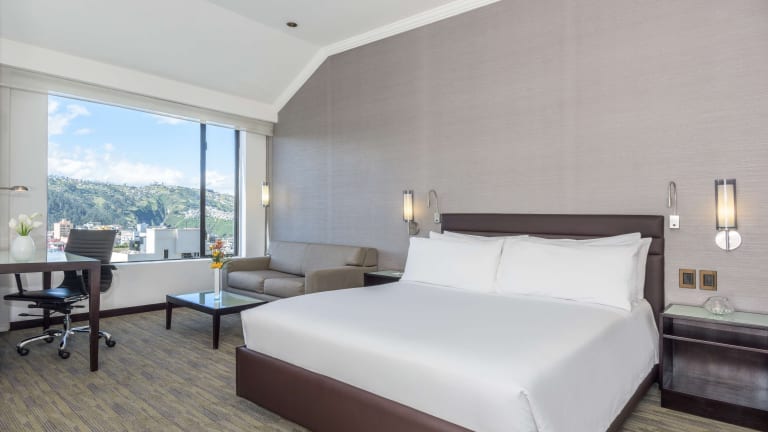 Die Zimmer im NH Collection Quito Royal sind modern eingerichtet und bieten allen Komfort, den Sie für einen angenehmen Aufenthalt benötigen. Alle Zimmer sind klimatisiert und verfügen über einen Flachbild-Kabel-TV, eine Kaffeemaschine und einen Schreibtisch. Einige Zimmer bieten zudem einen herrlichen Blick auf Quito.