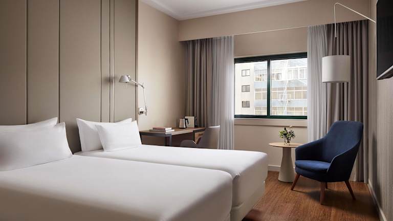 Das NH Lisboa Campo Grande Hotel verfügt über 82 moderne Zimmer, die mit allen Annehmlichkeiten ausgestattet sind, um Ihren Aufenthalt so angenehm wie möglich zu gestalten. Die Zimmer bieten große Fenster, eine Auswahl an Kissen, eine gut bestückte Minibar, Kabel-TV, kostenloses WLAN und einen bequemen Sitzbereich. Einige Zimmer verfügen auch über einen Balkon.