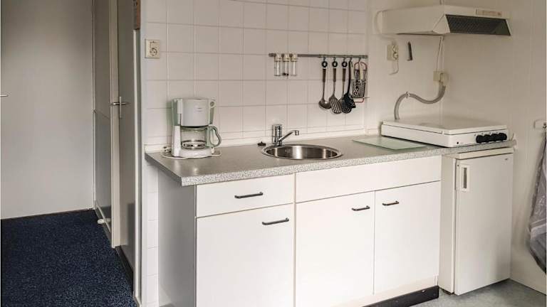 Die Ferienwohnung beinhaltet eine voll ausgestattete Küche mit einem Kühlschrank und einer Kaffeemaschine, die die Zubereitung eigener Mahlzeiten ermöglicht. Es sind keine weiteren Verpflegungsmöglichkeiten angegeben.