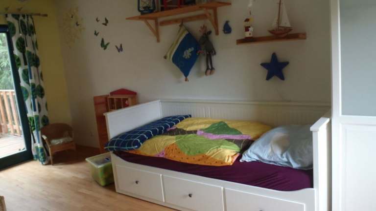 Die Ferienwohnung verfügt über zwei Schlafzimmer, ein Wohnzimmer und eine voll ausgestattete Küche mit Kühlschrank und Essbereich. Das Badezimmer ist ebenfalls vorhanden. Zur Ausstattung gehören ein TV mit Kabelkanälen, ein DVD-Player und ein CD-Player.