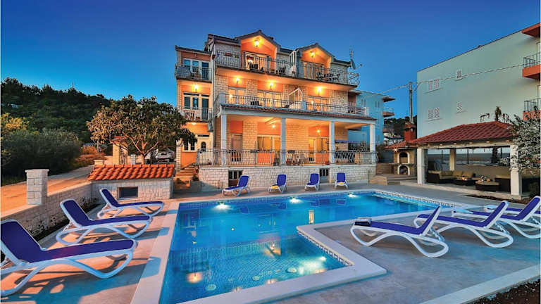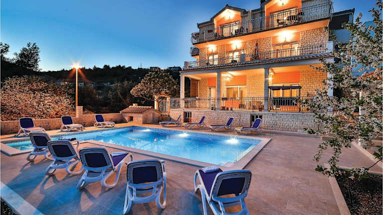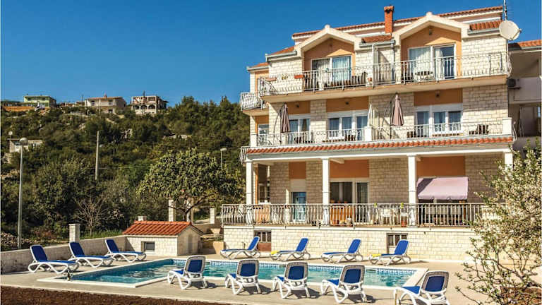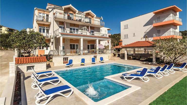 Die Ferienwohnung Awesome Apartment In Poljica bietet Übernachtungsmöglichkeiten in einer klimatisierten Umgebung mit zwei Schlafzimmern. Die Unterkunft verfügt über einen gemeinsamen Außenpool, einen Whirlpool sowie Grillmöglichkeiten im Garten. Kostenloses WLAN steht in der gesamten Unterkunft zur Verfügung und es gibt Parkmöglichkeiten vor Ort.