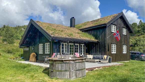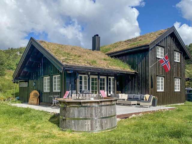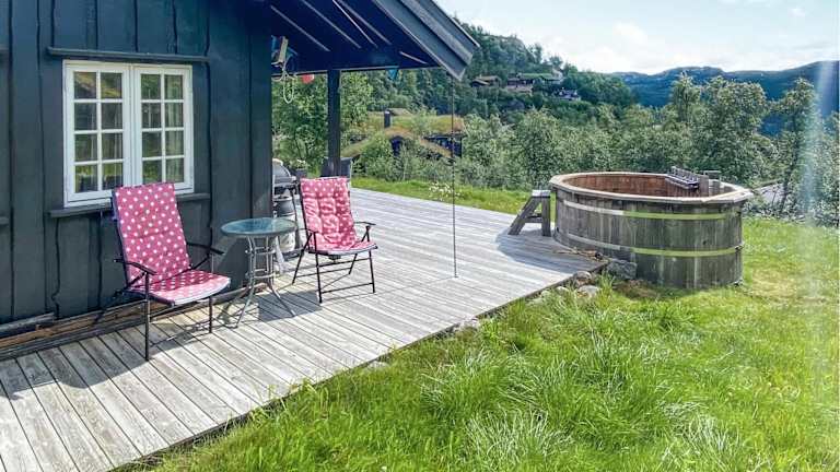 Das Ferienhaus befindet sich in Åseral und bietet einen beeindruckenden Blick auf die Berge. Die Umgebung ist ruhig und naturnah, ideal für entspannende Aufenthalte.