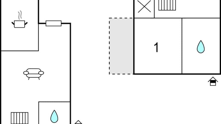 Das Ferienhaus verfügt über ein Schlafzimmer, ein Wohnzimmer, eine voll ausgestattete Küche mit Kühlschrank und Geschirrspüler sowie ein Badezimmer. Die Unterkunft ist zudem eine Nichtraucherunterkunft und bietet Gartenmöbel.