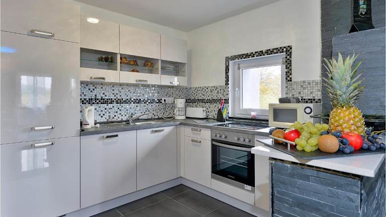 Das Ferienhaus besteht aus 2 Schlafzimmern, einem Wohnzimmer und einer voll ausgestatteten Küche, die mit einem Kühlschrank und einer Kaffeemaschine ausgestattet ist. Es gibt 2 Badezimmer, die jeweils mit einer Dusche und einem Whirlpool ausgestattet sind.