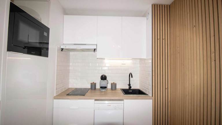 Die Ferienwohnung umfasst 1 Schlafzimmer, ein Wohnzimmer sowie ein Badezimmer mit Badewanne oder Dusche. Zur Ausstattung gehören ein TV und eine gut eingerichtete Küche mit Kühlschrank und Geschirrspüler.
