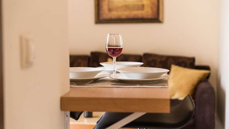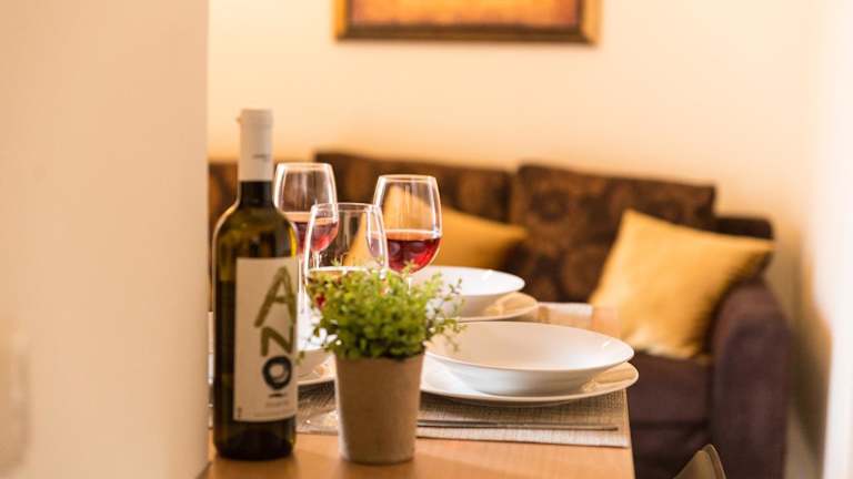 Es besteht die Möglichkeit, Essenslieferungen in die Unterkunft zu erhalten. Eine voll ausgestattete Küchenzeile in den Apartments ermöglicht Selbstverpflegung mit einem Kühlschrank, Herdplatte, Toaster und Wasserkocher.