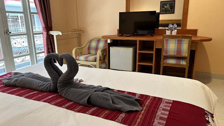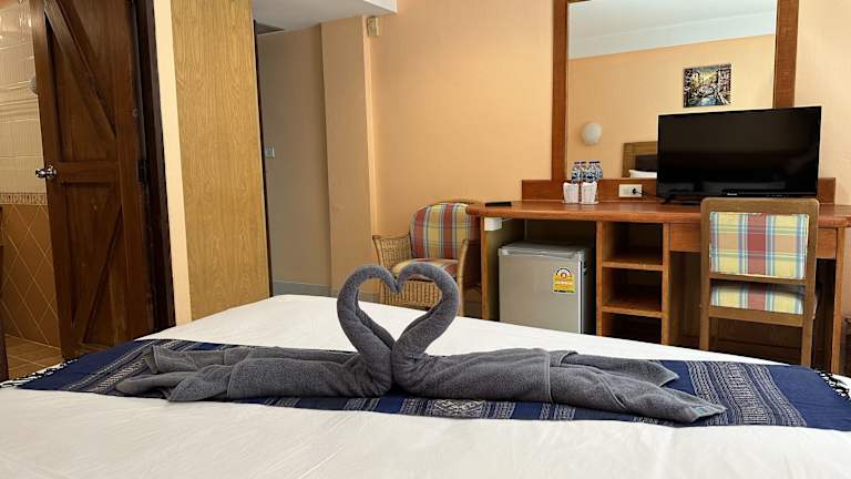 Die klimatisierten Zimmer des Nid Huahin Hotels sind mit einem Kleiderschrank, einem Safe, einem Flachbild-TV und einem eigenen Badezimmer mit Dusche ausgestattet. Zudem sind alle Zimmer mit Bettwäsche und Handtüchern versehen.
