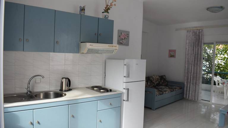 Die Wohneinheiten der Niki Apartments sind mit einem Balkon ausgestattet und verfügen über eine Kücheneinheit mit Kühlschrank sowie ein eigenes Badezimmer, das mit einer Dusche und einem Haartrockner ausgestattet ist. Babybetten sind für Kinder bis 2 Jahre verfügbar.