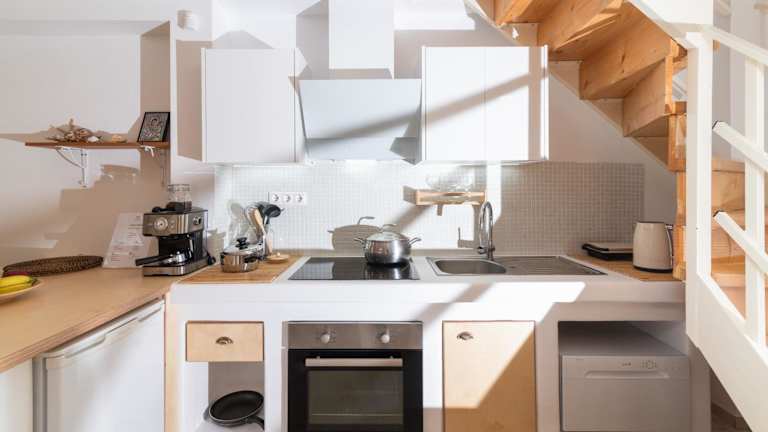 Das Ferienhaus verfügt über zwei Schlafzimmer, ein Wohnzimmer sowie eine voll ausgestattete Küche mit Kühlschrank und Kaffeemaschine. Außerdem sind zwei Badezimmer mit Dusche und kostenlosen Pflegeprodukten vorhanden. Handtücher und Bettwäsche werden bereitgestellt. Zur weiteren Ausstattung gehören Klimaanlage, Schallisolierung und Zugang zur Terrasse.