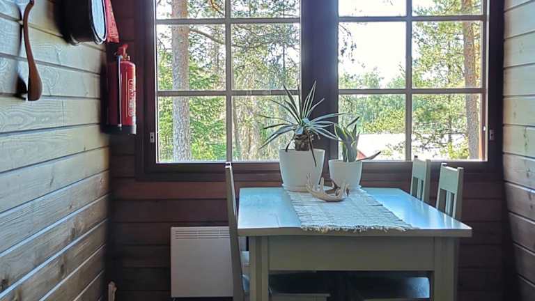 Das Chalet im Nikolain tupa, vanha hirsitalo verfügt über ein gemütliches Schlafzimmer, ein Wohnzimmer und eine voll ausgestattete Küche. Die Küche ist mit einem Kühlschrank und einer Kaffeemaschine ausgestattet. Im Bad finden Sie eine Dusche. Handtücher und Bettwäsche werden bereitgestellt.