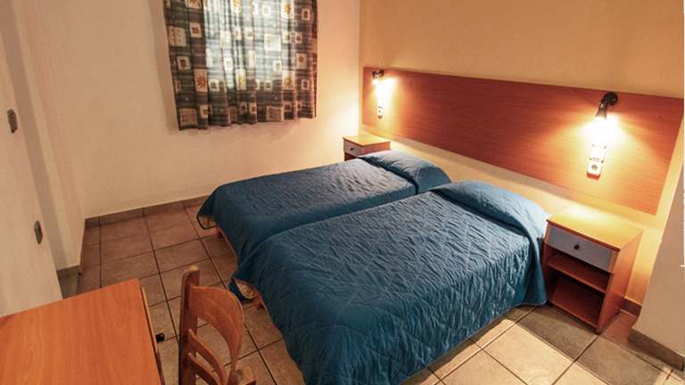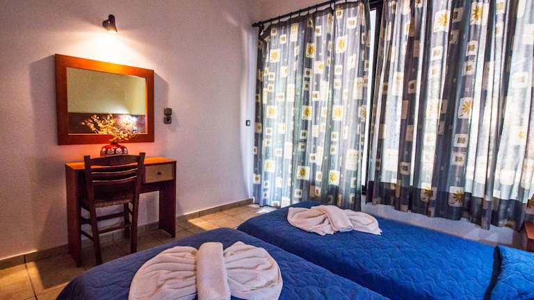Die 24 Zimmer des Nireas Studios & Aparts Hotels befinden sich in einem zweistöckigen Haupthaus und fünf Nebengebäuden. Jedes Zimmer verfügt über eine Klimaanlage, eine Kochnische mit Mikrowelle und Kaffeemaschine sowie einen Balkon oder eine Terrasse. WLAN und Fernseher sind ebenfalls vorhanden.