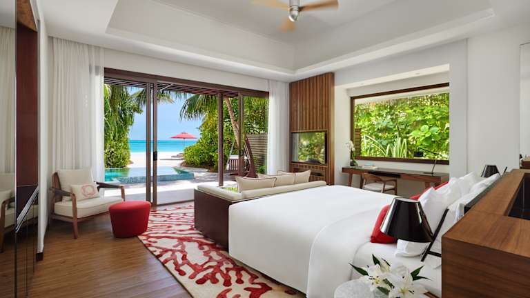 Eine Kollektion von 134 Villen, Suiten und Pavillons, die auf beide Inseln verteilt sind und sich über unsere Lagune erstrecken. Lassen Sie sich von den goldenen Sonnenuntergängen und der Meeresbrise auf Niyama Private Islands, einem der faszinierendsten Resorts auf den Malediven, ins Freie locken. Jede Villa verfügt über eine uneinsehbare Terrasse, die mit einer erfrischenden Regendusche, einem Bad im Mondschein oder einem ganz privaten Sonnenbad am Nachmittag lockt. Oder bleiben Sie in Ihrer Unterkunft, die mit allen Annehmlichkeiten aufwartet. Jedes Zimmer bietet ein Kingsize-Bett, ein Deli-In mit großem Kühlschrank gefüllt mit Gourmet-Leckereien, ein Entertainment-System mit LED-TV, Bose-Surround-Sound und einer Auswahl an internationalen Filmen sowie unseren Thakuru-Service (Butler) für den ultimativen Luxus. BEACH VILLAS - 135 m² Modernes maledivisches Dekor, mit Blick auf den Sonnenaufgang und direktem Zugang zum Strand. DELUXE BEACH VILLAS - 135 m² Stellen Sie sich Ihren Aufenthalt auf der Insel vor: Sie öffnen die Glastüren Ihrer Villa, schreiten barfuß über die sonnige Holzterrasse Ihrer Strandvilla auf den Malediven, und versinken dann mit den Zehen im weichen weißen Sand, während der Sonnenuntergang das Meer vor Ihnen in ein rosa- und orangefarbiges Gemälde verwandelt. BEACH POOL VILLAS - 190 m² Runden Sie Ihren Aufenthalt ab mit einem privaten Pool mit Blick auf den Strand. DELUXE BEACH POOL VILLAS - 190 m² Unser luxuriöses Resort lockt mit einem breiten Strand, weichem Sand und atemberaubenden Sonnenuntergängen. Tauchen Sie in das Wasser Ihres privaten Pools oder der Lagune hinter Ihrer privaten Villa auf den Malediven. WATER-POOL VILLAS - 175 m² In den den Farben des Ozeans gehalten und mit einem privaten Pool, der über der Lagune thront. DELUXE WATER POOL VILLAS - 190 m² Noch größer und besser, zusätzlich mit einem Whirlpool am Wasser. FAMILY BEACH POOL VILLAS - 255 m² Zwei Erwachsene, drei Kinder, ein Pool am Strand und ein Wohnzimmer, das zu einem zusätzlichen Schlafzimmer wird. DELUXE FAMILY BEACH POOL VILLAS - 255 m² Diese elegante Familienvilla verfügt über ein Wohnzimmer, das sich abends in ein Schlafzimmer mit Kingsize-Bett für zwei Kinder verwandelt. ONE BEDROOM WATER POOL PAVILION - 340 m² Platz zum Spielen, mit einem Wohnzimmer, das zum Meer geöffnet werden kann, einem Essbereich auf der Terrasse, einer Speisekammer und einem Pool sowie Whirlpool. ONE BEDROOM BEACH POOL PAVILION - 400 m² Ein Strandabschnitt, ganz für Sie allein, mit einem Pool und einem Whirlpool, sowie Wohn- und Essecken im Innen- und Außenbereich. TWO BEDROOM OCEAN POOL PAVILION - 515 m² Offenes Meer, auf dem Pool schwimmende Liegen, ein Whirlpool, ein abgesenktes Wohnzimmer und ein Essbereich mit Cocktailbar. TWO BEDROOM BEACH POOL PAVILION - 635 m² Zeit zum Feiern vor einer Strand- und Meereskulisse und dazu ein Pool mit Glasfaserbeleuchtung und Unterwasserlautsprechern. THREE BEDROOM BEACH POOL PAVILION - 770 m² Ein Privatstrand. Zwei Pools. Ein zentraler Wohnbereich. Ein Spa-Behandlungsraum. Planschen und essen Sie gemeinsam, und ziehen Sie sich dann in Ihre Privatsphäre zurück. THE CRESCENT Das Kronjuwel – eine Überwasserwelt von fünf Poolvillen für bis zu 22 Gäste. Ein persönlicher Koch und zwei Butler runden Ihre privaten Erlebnisse perfekt mit Bootsfahrten bei Sonnenuntergang, Grillfesten am Pool und Filmabenden unter den Sternen ab.