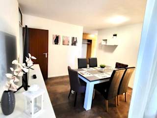 Die Ferienwohnung im nJoy! Comfort Apartment umfasst 3 Schlafzimmer und ein Badezimmer mit einer Badewanne. Zur Ausstattung gehören ein Flachbild-TV, ein Kühlschrank, ein Geschirrspüler sowie Handtücher und Bettwäsche. Die Unterkunft ist vollständig ausgestattet und bietet Platz für eine komfortable Aufenthaltsgestaltung.