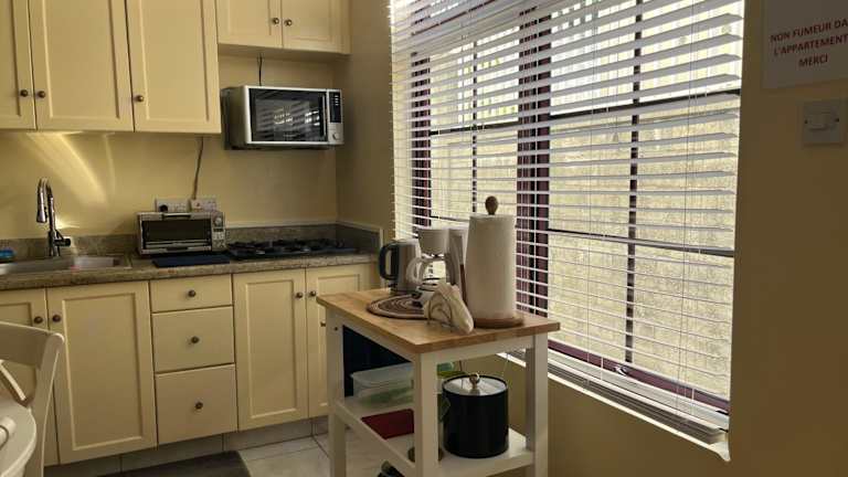 Das Apartment im NMG Comforts verfügt über ein gemütliches Schlafzimmer, eine gut ausgestattete Küche mit Kühlschrank und Mikrowelle sowie einen komfortablen Wohnbereich. Ein Flachbild-TV sorgt für Unterhaltung und das Badezimmer bietet alle notwendigen Annehmlichkeiten. Handtücher und Bettwäsche werden gestellt, um Ihren Aufenthalt so angenehm wie möglich zu gestalten.