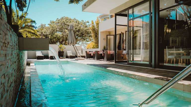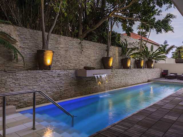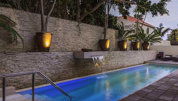 Das Mantis No5 Boutique Art Hotel in Port Elizabeth bietet Paaren ab 16 Jahren einen luxuriösen Aufenthalt in einer ruhigen Umgebung mit Blick auf den Indischen Ozean. Das Hotel besticht durch seine eleganten und modernen Suiten, die jeweils eine eigene Terrasse und Blick auf die angelegten Gärten bieten. Genießen Sie den Außenpool und den Wellnessbereich sowie das einzigartige Ambiente der Champagne Lounge und des Jazz Rooms. Das Hotel liegt nur wenige Minuten vom Flughafen Port Elizabeth und nur 100 m vom Indischen Ozean entfernt.