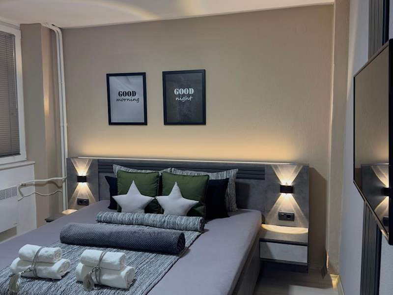 Das NOA Luxury Apartment in Bitola ist eine luxuriöse Unterkunft mit einem wunderschönen Garten, einer Terrasse und einer Bar. Hier können Sie sich entspannen, kostenfreies WLAN nutzen und den Blick auf die Stadt genießen. Die Privatparkplätze stehen Ihnen kostenlos zur Verfügung. In der Umgebung gibt es viele Aktivitäten wie Skifahren und Radfahren. Das klimatisierte Apartment verfügt über ein Schlafzimmer, ein Wohnzimmer, eine voll ausgestattete Küche mit Kühlschrank und Kaffeemaschine sowie ein Badezimmer mit Dusche und Whirlpool. Handtücher und Bettwäsche werden gestellt. Das freundliche Personal an der Rezeption spricht mehrere Sprachen und gibt Ihnen gerne Tipps zur Umgebung. Es gibt auch ein Casino im Apartment. Der nächstgelegene Flughafen ist der Flughafen Ohrid, der 79 km entfernt liegt. Ein kostenpflichtiger Flughafentransfer wird angeboten.