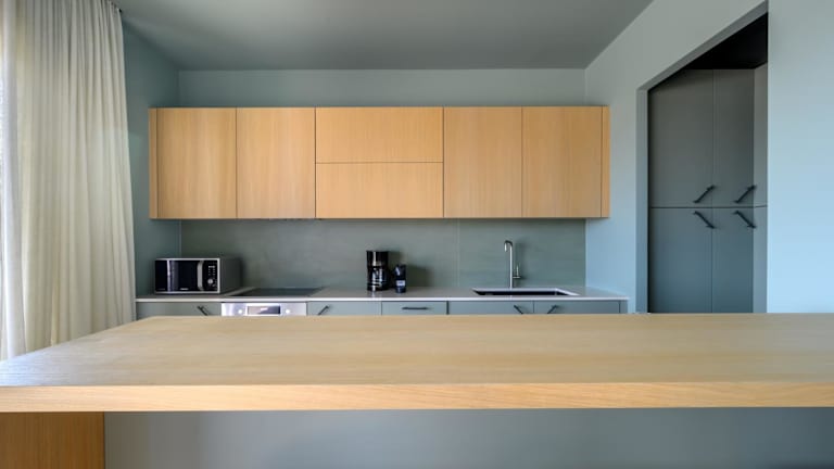 Die Unterkunft verfügt über eine voll ausgestattete Küche mit einem Kühlschrank, Geschirrspüler, Ofen, Mikrowelle und Herdplatte. Zudem stehen eine Kaffeemaschine und ein Wasserkocher zur Verfügung. Ein Grill kann ebenfalls genutzt werden.