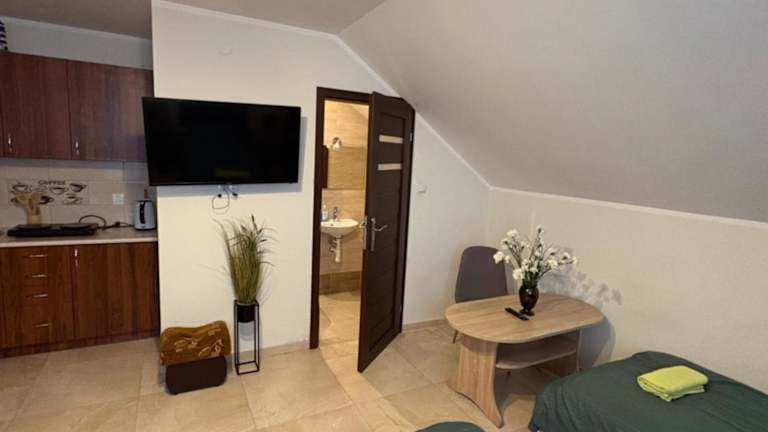 Die Zimmer im Noclegi Mączyńskiego sind gemütlich eingerichtet und verfügen über Annehmlichkeiten wie einen Wasserkocher und einen Schreibtisch. Hier können sich die Gäste nach einem ereignisreichen Tag entspannen und erholen.