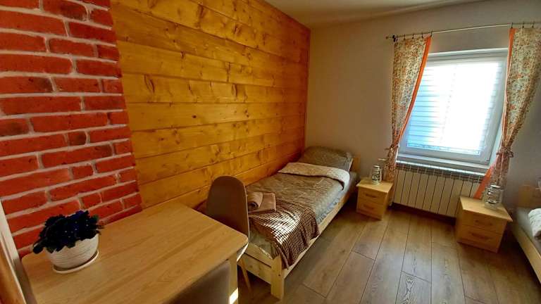 Das Noclegi Majowy Zakątek verfügt über eine Gemeinschaftsküche, in der Sie Ihre eigenen Mahlzeiten zubereiten können. Es gibt auch eine Gemeinschaftslounge, in der Sie sich mit anderen Gästen treffen können. In der Umgebung gibt es auch Restaurants und Cafés, in denen Sie lokale Spezialitäten genießen können.