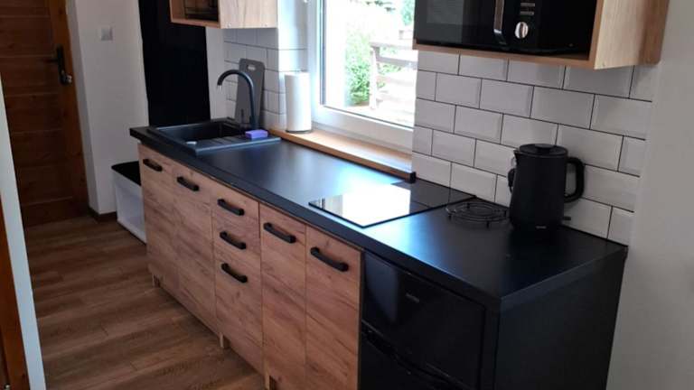 Die Unterkunft verfügt über eine Küche, die mit einem Kühlschrank, einer Mikrowelle, einer Herdplatte und einem Wasserkocher ausgestattet ist. Eine Terrasse ist ebenfalls vorhanden.