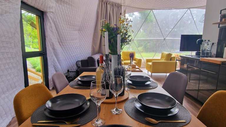 Das Nomad Domes bietet Selbstversorgungsmöglichkeiten in den Zimmern, da jede Wohneinheit eine voll ausgestattete Küchenzeile hat. So können Sie Ihre eigenen Mahlzeiten zubereiten und den Essbereich nutzen. Alternativ können Sie auch in der Umgebung Restaurants entdecken und lokale Spezialitäten probieren.