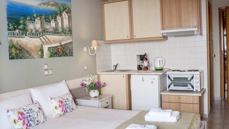 Das Nontas Home bietet komfortable Zimmer und Studios, die alle klimatisiert sind und kostenfreies WLAN bieten. Jede Unterkunft verfügt über einen Balkon, auf dem Sie die frische Luft und die Aussicht genießen können. Die Zimmer sind mit einem TV und einer Klimaanlage ausgestattet. Das private Badezimmer verfügt über eine Dusche und einen Haartrockner. Einige Zimmer verfügen auch über eine Küchenzeile mit einem Mini-Backofen und Kochplatten.
