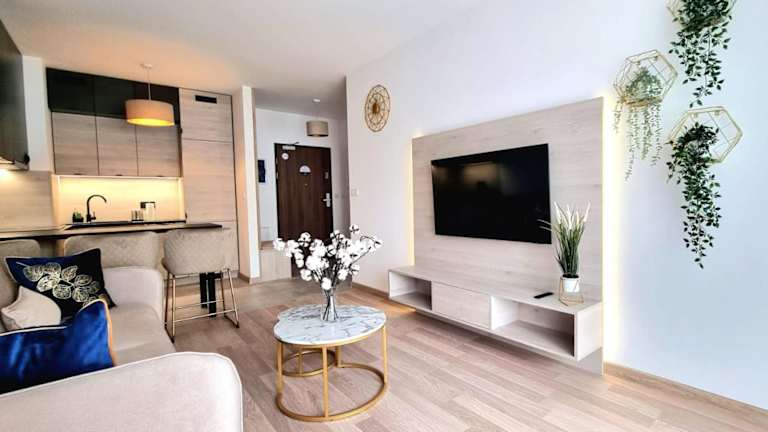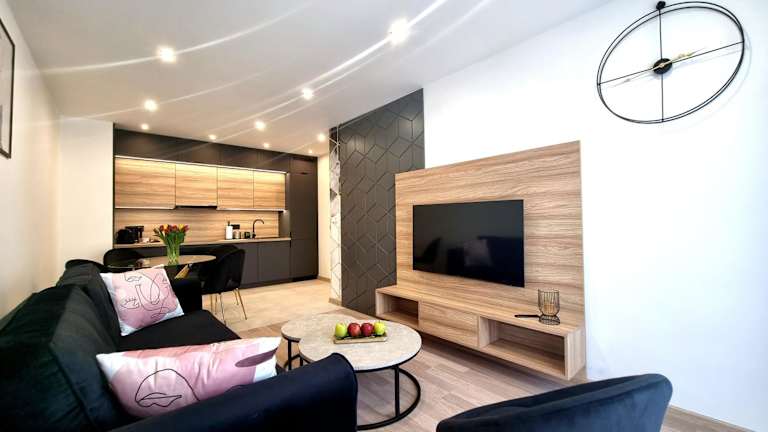 NOOK NOOK Apartments Bytkowska 103 bietet verschiedene Wohneinheiten, die mit modernem Komfort ausgestattet sind. In den Apartments stehen den Gästen kostenloses WLAN und ein kostenloser Privatparkplatz zur Verfügung. Alle Apartments sind funktional gestaltet und bieten einen Sitzbereich sowie einen Flachbild-TV.