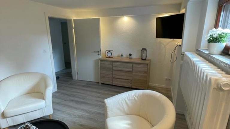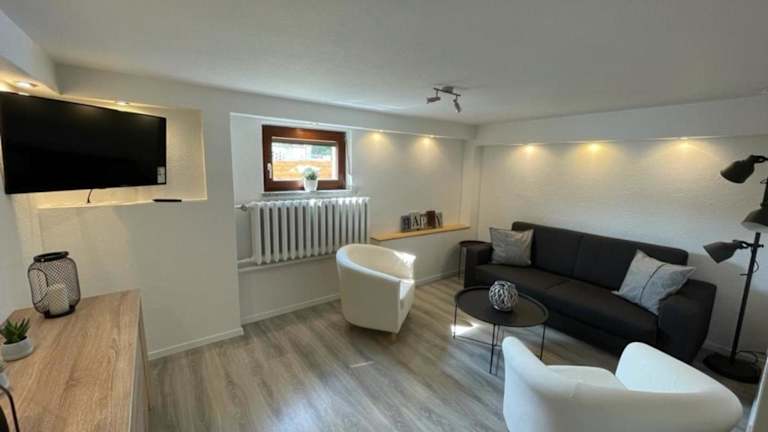 Die Ferienwohnung besteht aus einem Schlafzimmer und einem Wohnzimmer. Zur Ausstattung gehören eine voll ausgestattete Küche mit Kühlschrank und Kaffeemaschine sowie ein Badezimmer mit Dusche und Haartrockner. Des Weiteren gibt es einen Flachbild-TV und einen DVD-Player.