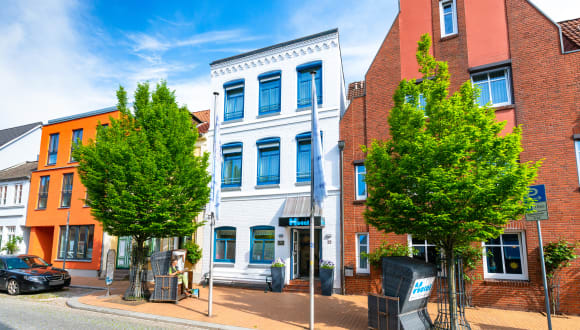 Unser liebevoll eingerichtetes Hotel befindet sich zentral im Herzen der Nordseestadt Husum und ist dennoch ruhig gelegen. Nach nur knapp 300m zu Fuß erreichen Sie den Marktplatz und die Einkaufsstraße mit dem Shoppingcenter THEO, auch das Husumer Schloss mit seinem Schlosspark ist bequem zu Fuß erreichbar. Der malerische Binnenhafen mit zahlreichen Restaurants, Cafés und Geschäften ist ebenso nur ca. 500m von unserem Hotel entfernt. Genießen Sie das maritime Altstadtflair hautnah.