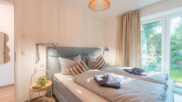 Die Ferienwohnung im Erdgeschoss verfügt über 2 Schlafzimmer, einen TV und eine voll ausgestattete Küche. Zur Ausstattung der Küche gehören ein Kühlschrank, ein Ofen, eine Waschmaschine, eine Mikrowelle sowie eine Herdplatte.