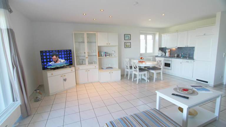 Die Ferienwohnung verfügt über 1 Schlafzimmer und ist mit einem TV sowie einer voll ausgestatteten Küche ausgestattet. Die Küche beinhaltet einen Kühlschrank, einen Geschirrspüler, eine Waschmaschine, einen Ofen und eine Herdplatte.