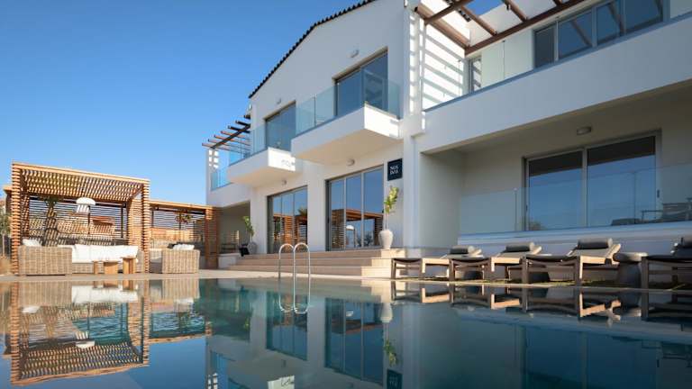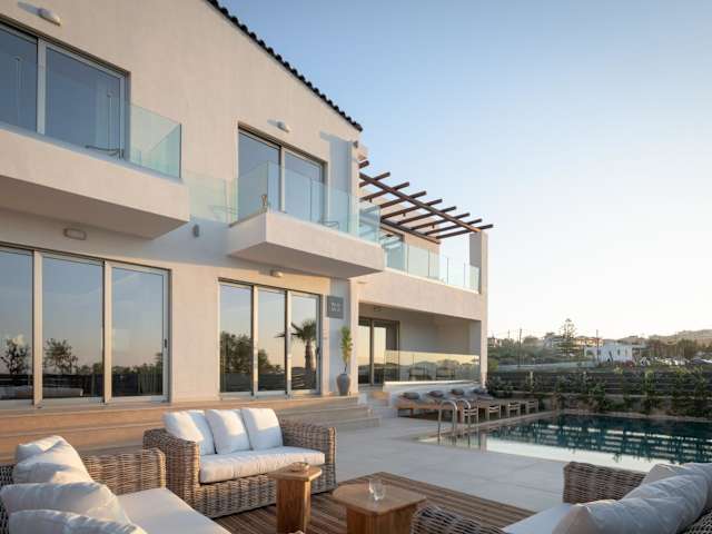 Die Nos Duos Villa in Panormos Rethymno ist ein spektakuläres Strandrefugium, das Ihnen einen atemberaubenden Blick auf das Meer und die Berge bietet. Mit einem saisonalen Außenpool, einem Fitnesscenter und einem Hamam können Sie sich hier vollkommen entspannen. Die Villa verfügt über 6 klimatisierte Schlafzimmer, ein geräumiges Wohnzimmer und eine voll ausgestattete Küche. Der private Strandbereich, der Kinderspielplatz und der Garten bieten zusätzliche Möglichkeiten zur Erholung und Unterhaltung. In der Umgebung können Sie Aktivitäten wie Wandern, Radfahren und Tischtennis ausüben.