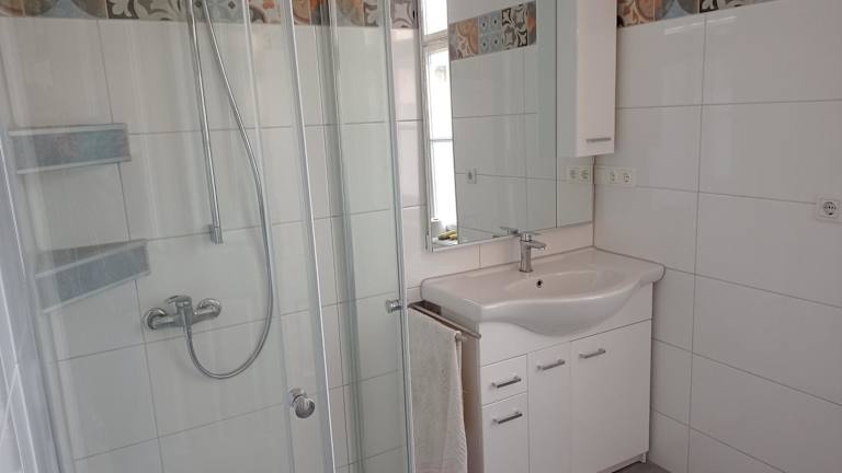 Die Ferienwohnung besteht aus zwei Schlafzimmern, einem Wohnzimmer und einer voll ausgestatteten Küche, die einen Kühlschrank und eine Kaffeemaschine umfasst. Außerdem gibt es ein Badezimmer mit Dusche und Hausschuhen. Handtücher und Bettwäsche werden bereitgestellt.