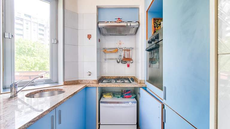 Die Ferienwohnung ist mit einer Küche ausgestattet, die einen Kühlschrank, Geschirrspüler, Ofen und eine Kaffeemaschine beinhaltet.