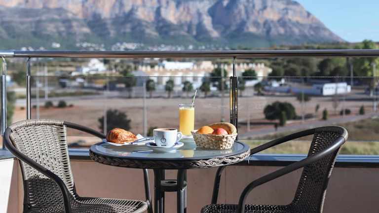 Die Verpflegungsmöglichkeiten umfassen ein Restaurant im Nebengebäude mit Fokus auf Meeresfrüchte und frisch gefangenem Fisch vom Fischmarkt in Denia. Eine Cafeteria ist ebenfalls vorhanden. Komfort wie Essenslieferungen in die Unterkunft und Frühstücks-Behälter zum Mitnehmen werden angeboten.
