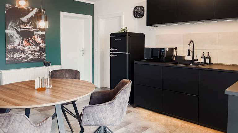 Die Apartments verfügen über eine gut ausgestattete Küche, in der Sie Ihre eigenen Mahlzeiten zubereiten können. In der Umgebung gibt es jedoch auch eine Vielzahl von Restaurants und Cafés, in denen Sie lokale Spezialitäten und internationale Küche genießen können. Lassen Sie sich von den kulinarischen Köstlichkeiten der Region verwöhnen.