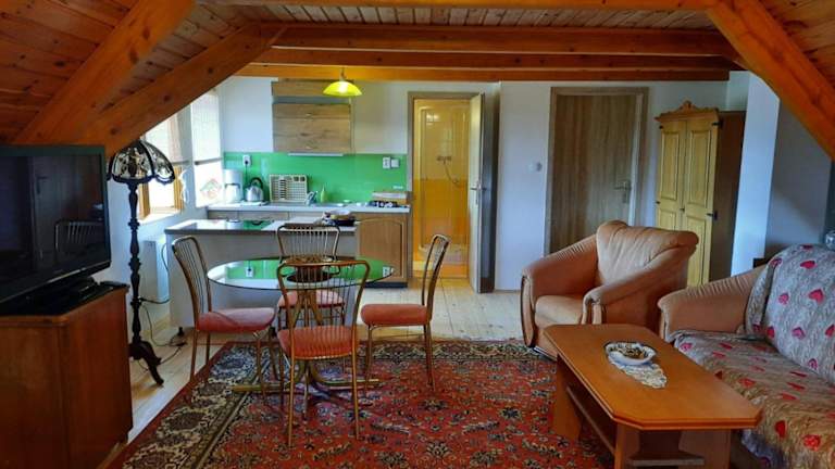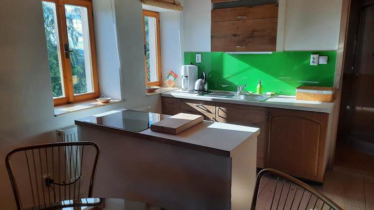 Novohradský ráj aneb Oáza klidu na samotě u lesa bietet eine klimatisierte Ferienwohnung in ruhiger Lage. Die Unterkunft umfasst ein Schlafzimmer, eine Küche und ein Badezimmer. Kostenloses WLAN sowie Privatparkplätze stehen den Gästen zur Verfügung. Es handelt sich um eine ideale Oase für Ruhe und Erholung.