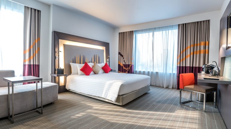 Das Novotel Bangkok Ploenchit Sukhumvit befindet sich in einer erstklassigen Lage im Herzen von Bangkok. Die BTS-Skytrain-Station Ploenchit liegt direkt vor der Tür und ermöglicht einen einfachen Zugang zu den Geschäftsvierteln der Stadt. Die Einkaufszentren Central Embassy und Central Chidlom erreichen Sie in nur 3 Gehminuten. Beliebte Einkaufszentren wie das CentralWorld, MBK und Siam Paragon sind ebenfalls leicht erreichbar. Der internationale Flughafen Bangkok-Suvarnabhumi ist nur 45 Fahrminuten entfernt.