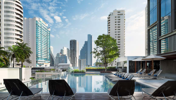 Das Novotel Bangkok Sukhumvit 20 - SHA Extra Plus Certified bietet eine moderne Unterkunft in zentraler Lage in Bangkok. Mit komfortablen Zimmern, kostenfreiem WLAN und einem Außenpool auf der 9. Etage bietet das Hotel alles, was Sie für einen angenehmen Aufenthalt benötigen. Die Lage des Hotels ermöglicht es Ihnen, in nur 10 Gehminuten eine Vielzahl von Einkaufsmöglichkeiten, Restaurants und öffentlichen Verkehrsmitteln zu erreichen.