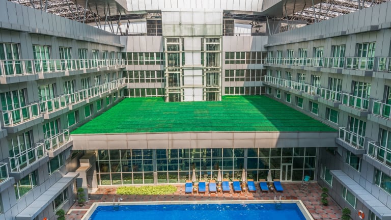 Im Novotel Guangzhou Baiyun Airport können Sie sich im Außenpool erfrischen oder im Fitnesscenter trainieren. Der Garten bietet eine grüne Oase der Ruhe, in der Sie entspannen und die Natur genießen können. Das Hotel bietet auch eine 24-Stunden-Rezeption, Flughafentransfers und Zimmerservice, um sicherzustellen, dass Ihr Aufenthalt so angenehm wie möglich ist.