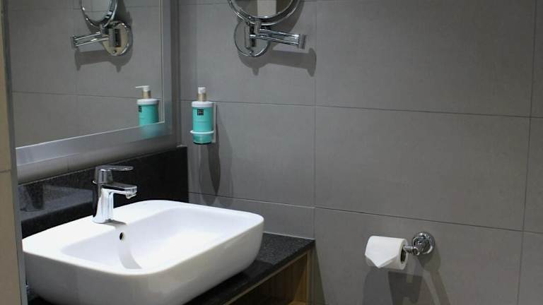 Die Zimmer sind mit Teppichböden ausgelegt und bieten Klimaanlage, Heizung sowie ein Doppelbett. Zur Ausstattung gehören ein Safe, eine Minibar, ein Schreibtisch und eine Tee-/Kaffeemaschine. Die Gäste finden zudem einen 55-Zoll-LCD-TV und kostenloses WLAN vor. Die Badezimmer sind mit Dusche und Badewanne ausgestattet und bieten kostenfreie Pflegeprodukte.
