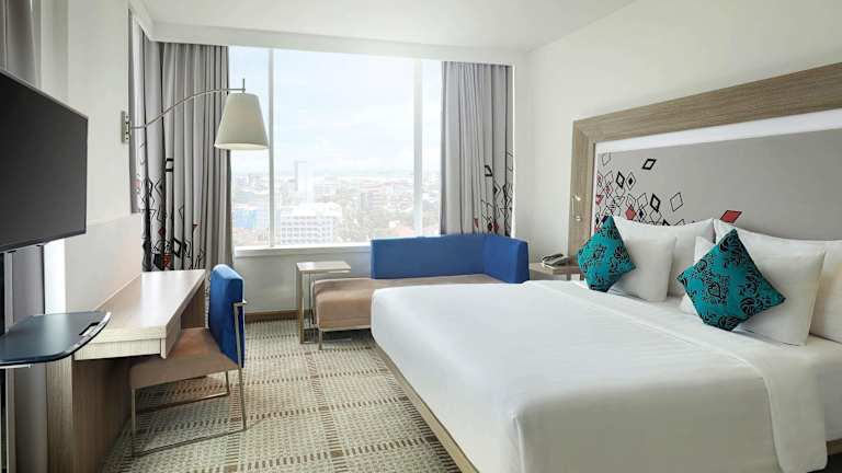 Das Novotel Makassar Grand Shayla verfügt über 260 Zimmer auf 13 Etagen. Alle Zimmer sind modern eingerichtet und verfügen über Annehmlichkeiten wie Klimaanlage, Flachbild-Kabel-TV und einen Wasserkocher. Kostenfreie Pflegeprodukte und Hausschuhe sind ebenfalls vorhanden. Das Hotel bietet auch rollstuhlgerechte Einrichtungen.