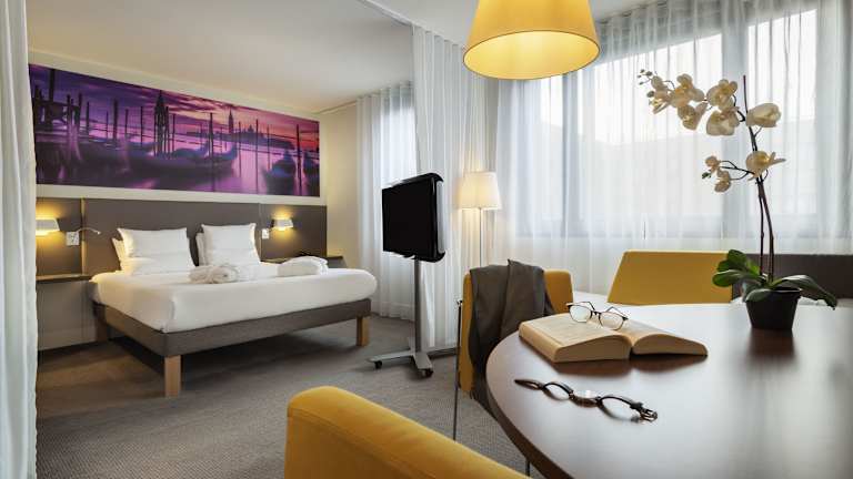 Das Novotel Suites Paris CDG Airport Villepinte befindet sich im Herzen des Gewerbeparks Paris Nord 2, nur 10 Fahrminuten vom Flughafen Paris-Charles-de-Gaulle und 5 Fahrminuten vom Messegelände Parc des Expositions de Paris Nord Villepinte entfernt. Die Lage ist ideal für Geschäftsreisende und Messebesucher.