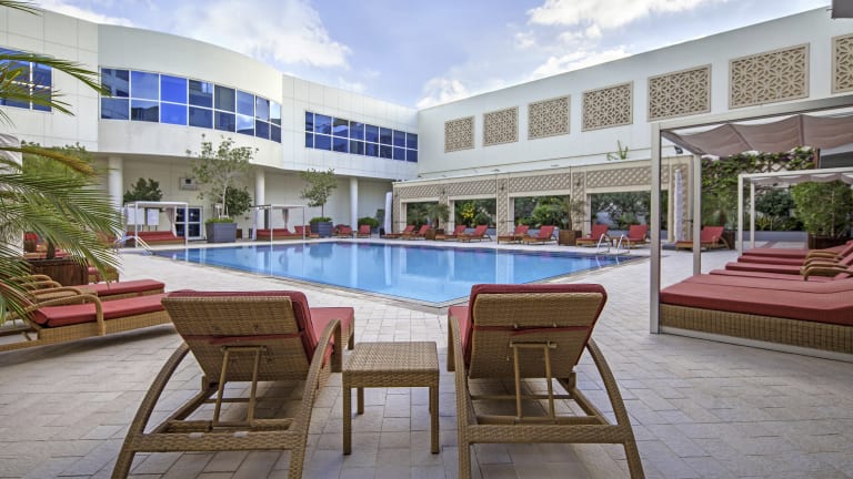 Zu einem tollen Start in den Tag lädt Sie ein Frühstück im Zimmer ein. Zahlreiche Gasthäuser, sowohl das The Noodle House als auch das Restaurant Spectrum on One, liegen in einigen 100 Metern Entfernung. Ebenso gibt es ein vielseitiges Nachtleben in Dubai. Entdecken Sie den Peppermint Club, um die Stadt bei Nacht kennenzulernen.